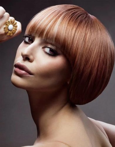 Боб-Каре с дополнительным объемом сзади. Соединила в себе все лучшее, что есть в обеих прическах. Длинные прядки или градуированные локоны хорошо корректируют овал лица, визуально вытягивая его. А высокий объемный затылок делает осанку ровнее. Челка в многослойном Бобе скрывает морщинки на лбу.